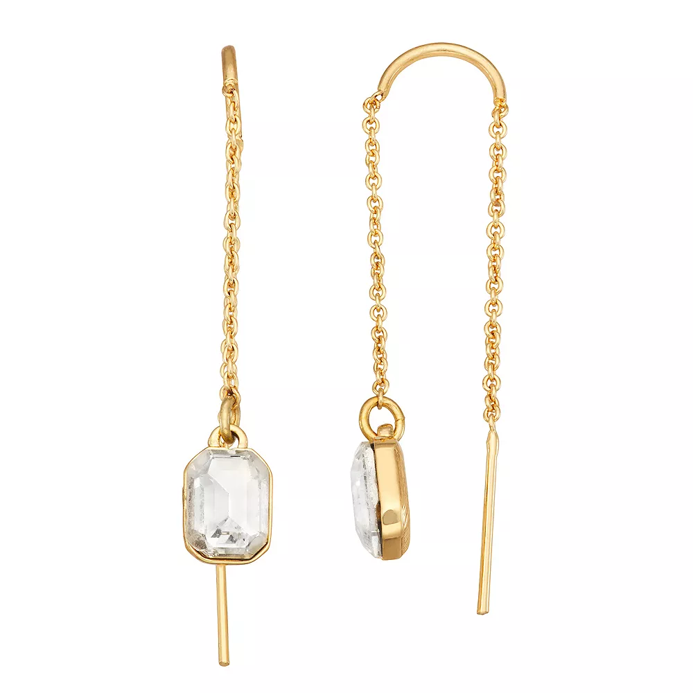 Finish off your ensemble with a touch of sparkle in these gold tone crystal threader drop earrings from Nine West.