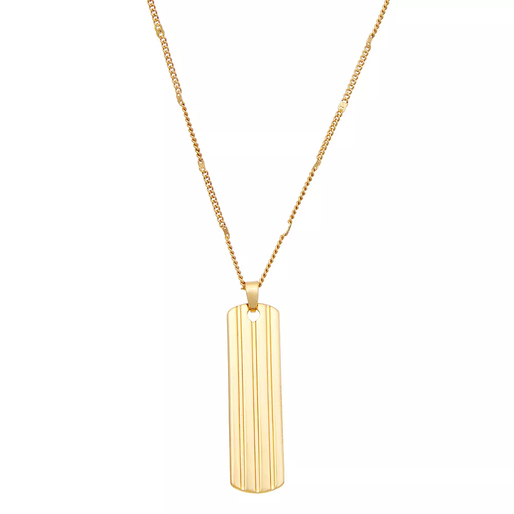 Give your jewelry collection a refresh with this gold tone dog tag pendant necklace from Nine West.