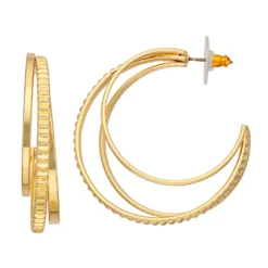 You will love the unique and chic design of these Nine West gold tone triple orbital hoop earrings.
