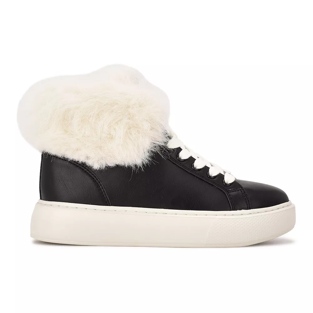 You’ll be cozy and stylish in these Nine West Keepup women’s faux-fur sneakers.