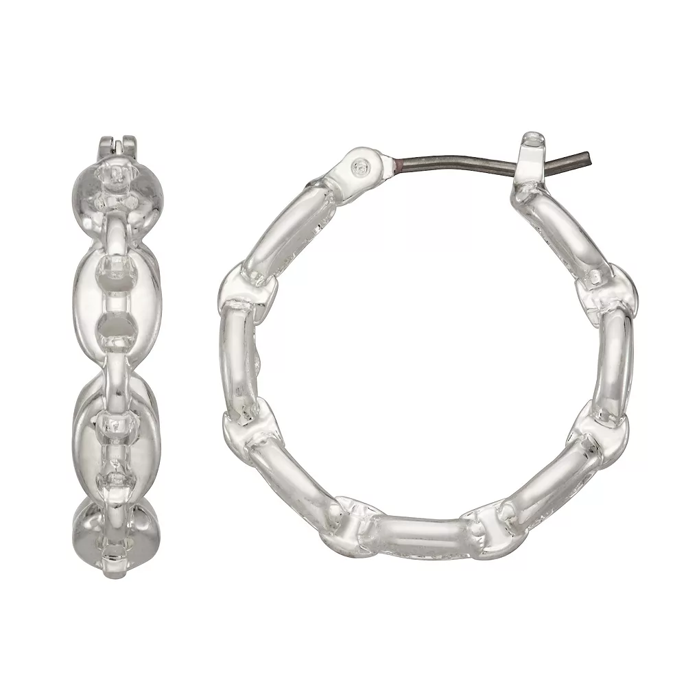 These Nine West Silver Tone Chain Link Click-It Hoop Earrings are subtly sweet.