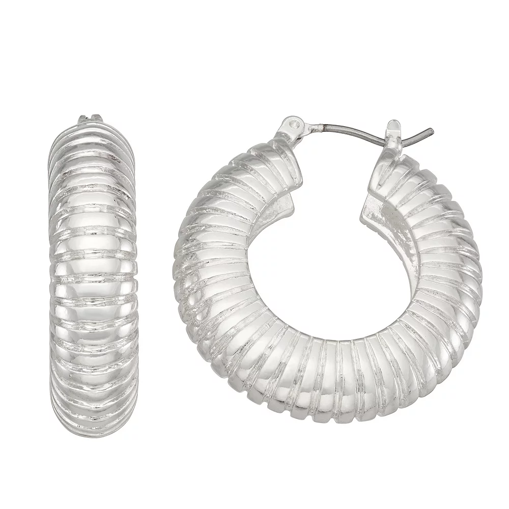 Be bold in your accessories with these Nine West ribbed hoop earrings.