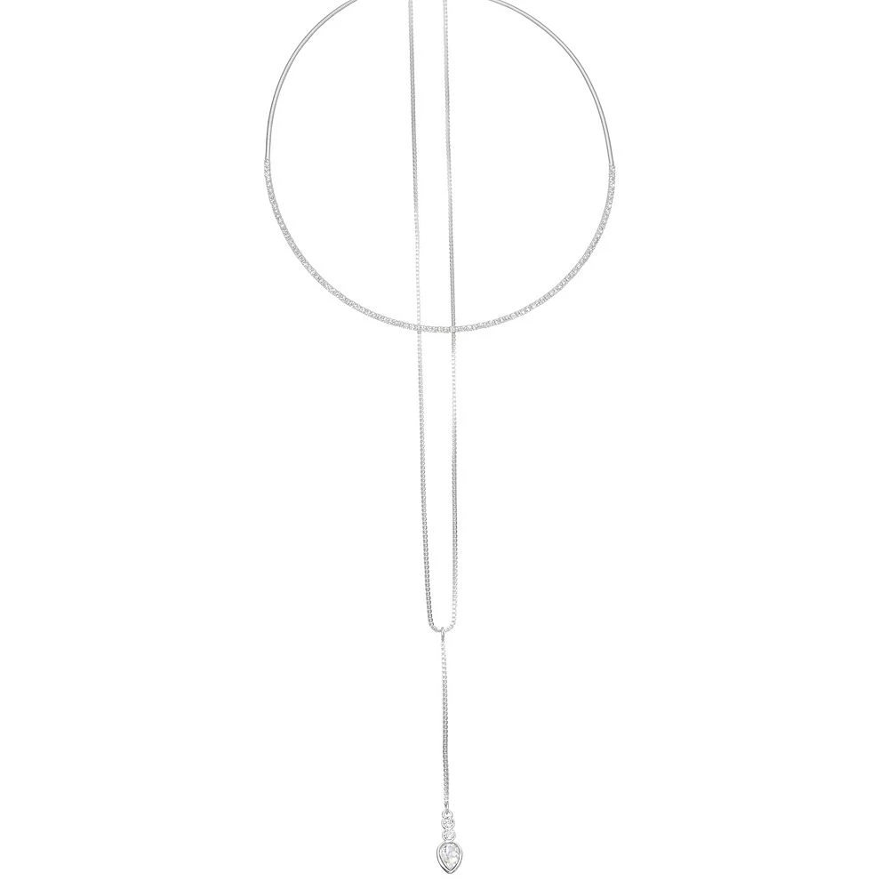 Add shape and shimmer to your look with this Nine West Silver Tone Simulated Crystal Multirow Necklace.