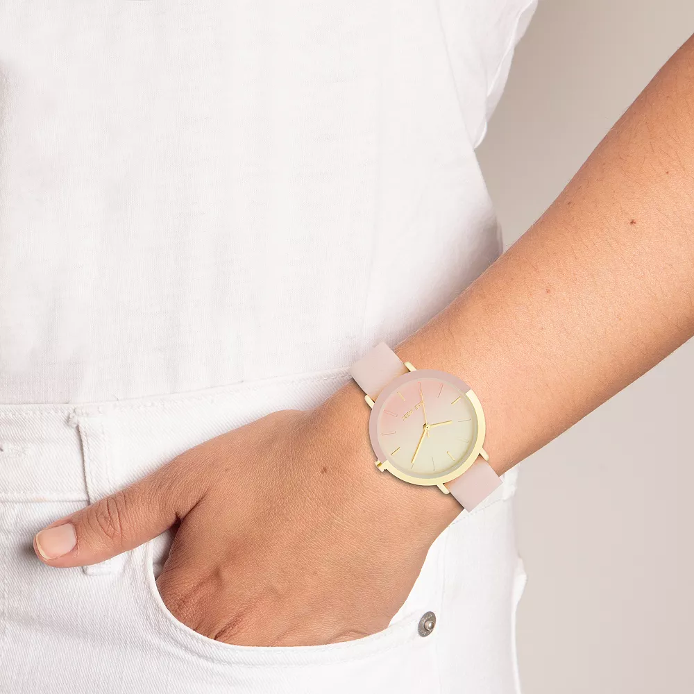 Featuring a degrade dial that fades from black to rose gold, this distinctive Nine West watch sets your look apart.