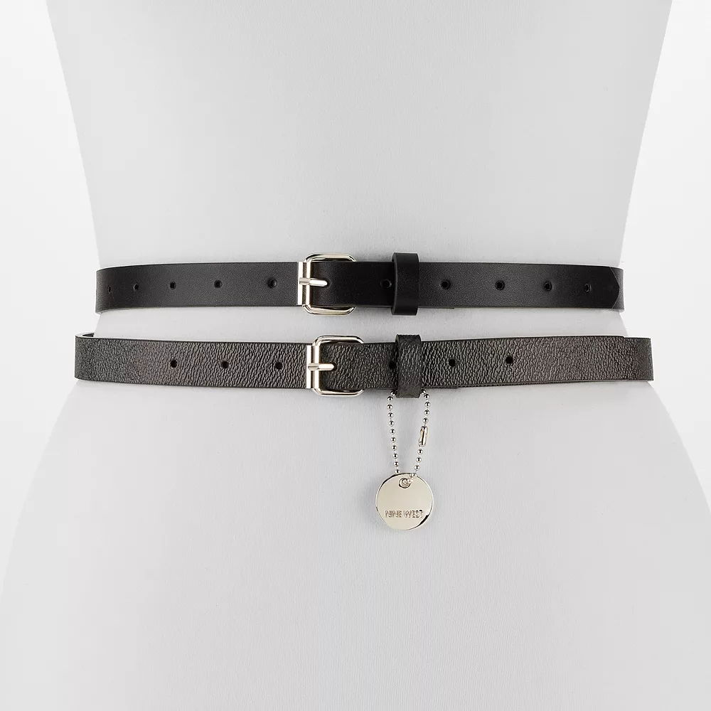 Tie together your next look with this great Nine West 2-for-1 Roller Buckle Logo Belt Set.