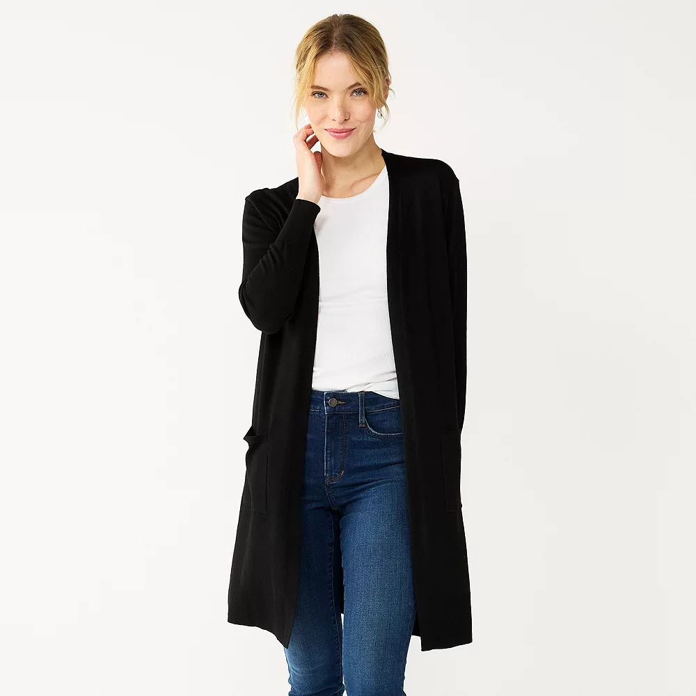 For a look that’s flattering, look no further than this women’s duster cardigan from Nine West.