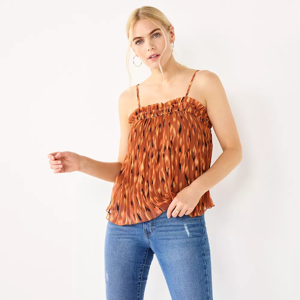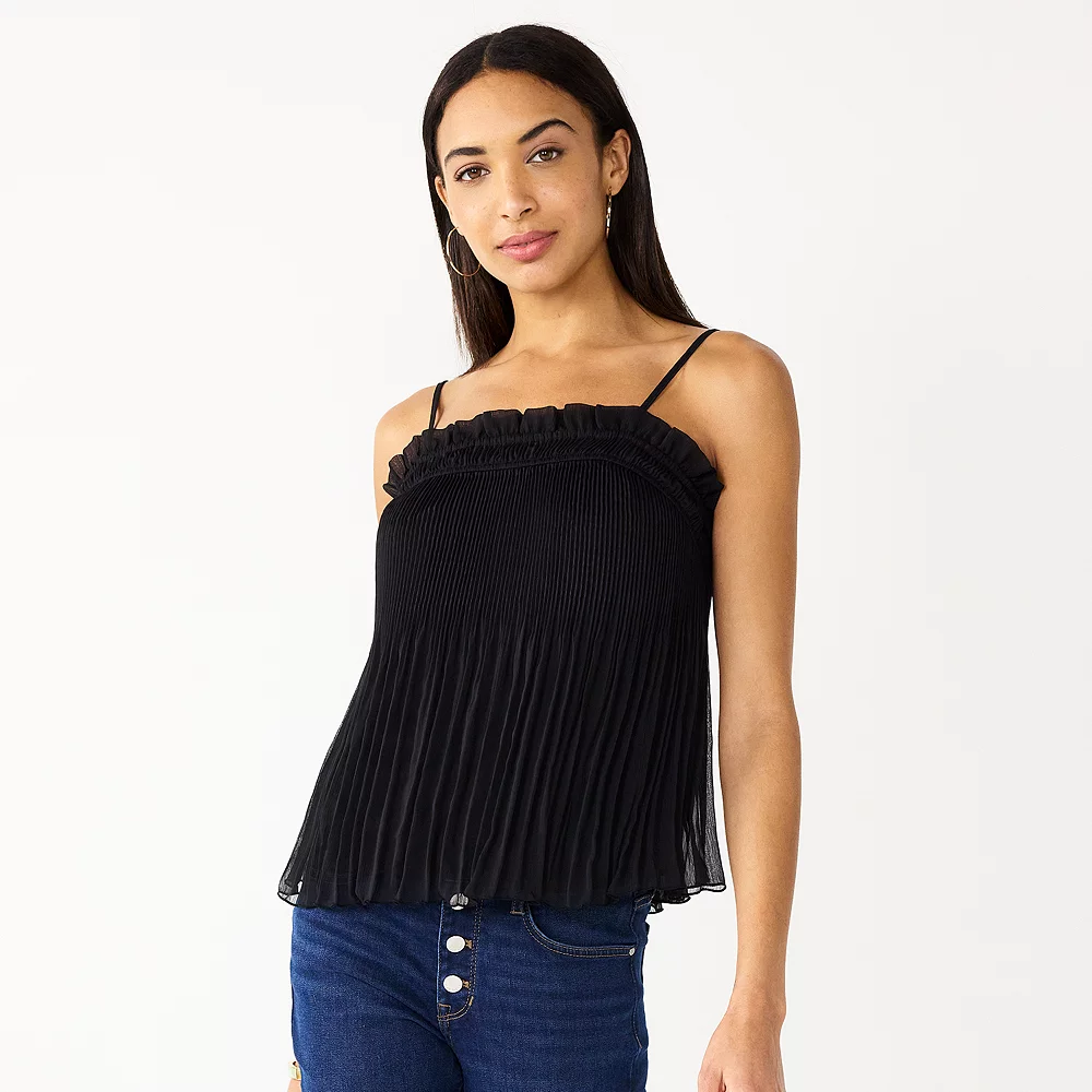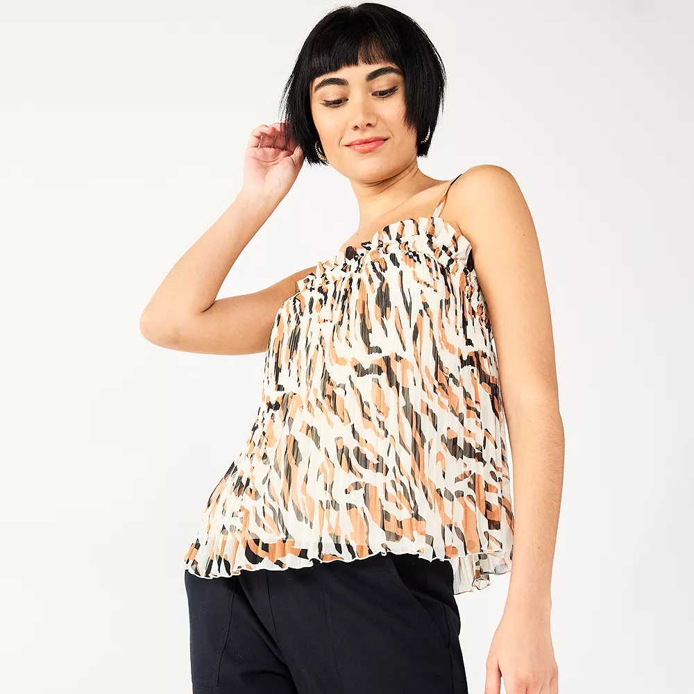 Refresh your warm weather wardrobe with this eye-catching women’s pleated tank top from Nine West.