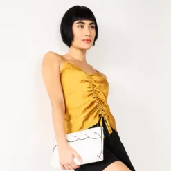With its ruched, drawstring front and satin construction, this women’s Nine West V-neck tank top is an eye-catching addition to your warm weather wardrobe.